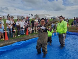 毎年恒例のシャケの掴み取りも大盛り上がり😆!!