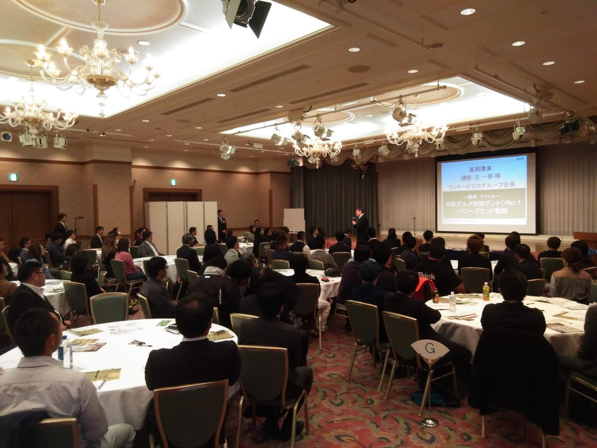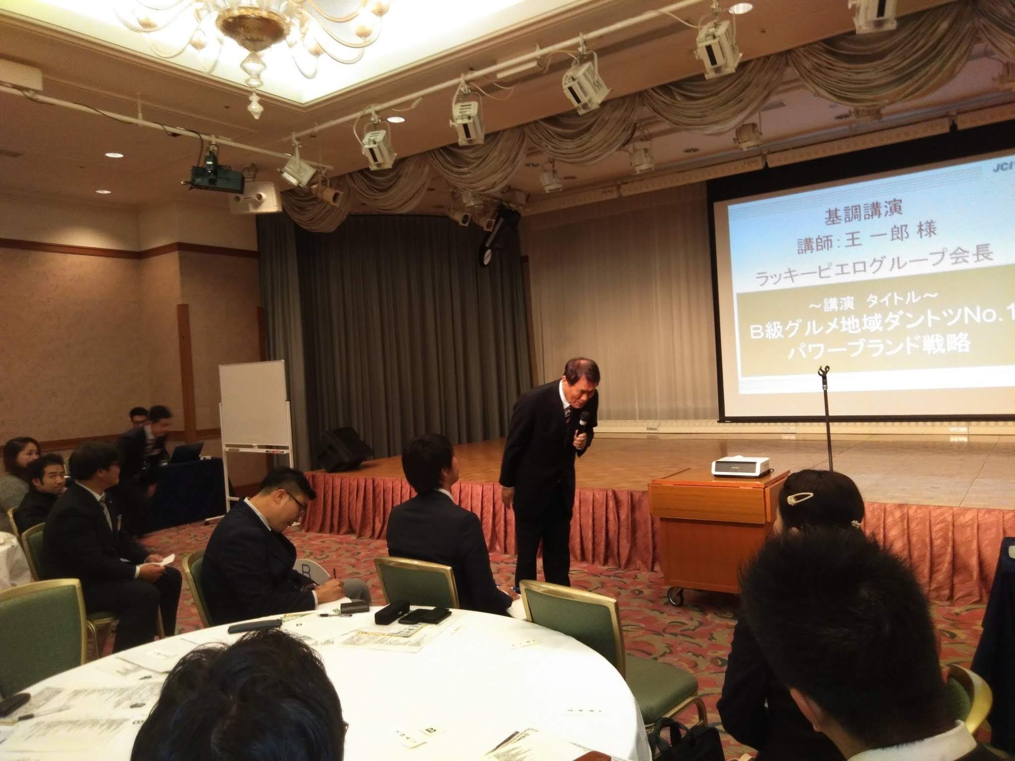 講演会は、ラッキーピエロの紹介VTRから始まり、王会長ご自身の今までの経緯から考えた事、地域の中で自分はどうあるべきなのか、なぜ地域で一番になる必要性があるのか。