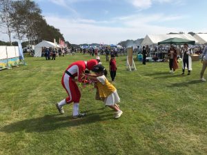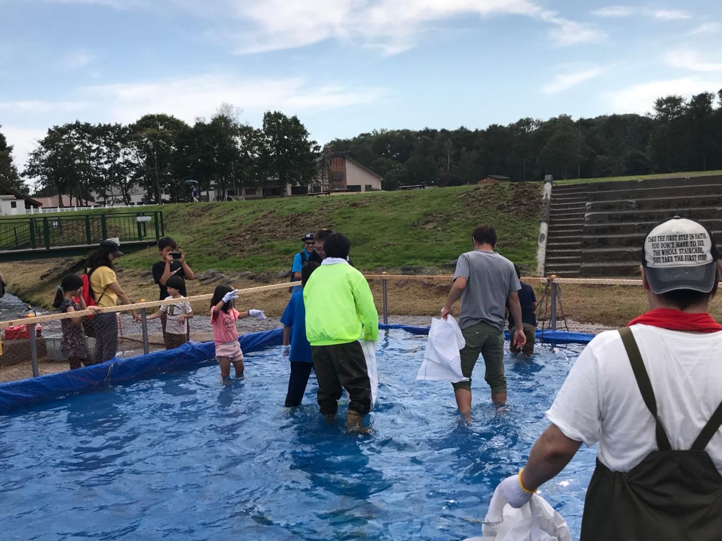 悪者をやっつける大相撲、鮭のつかみどり体験の運営を行いました。