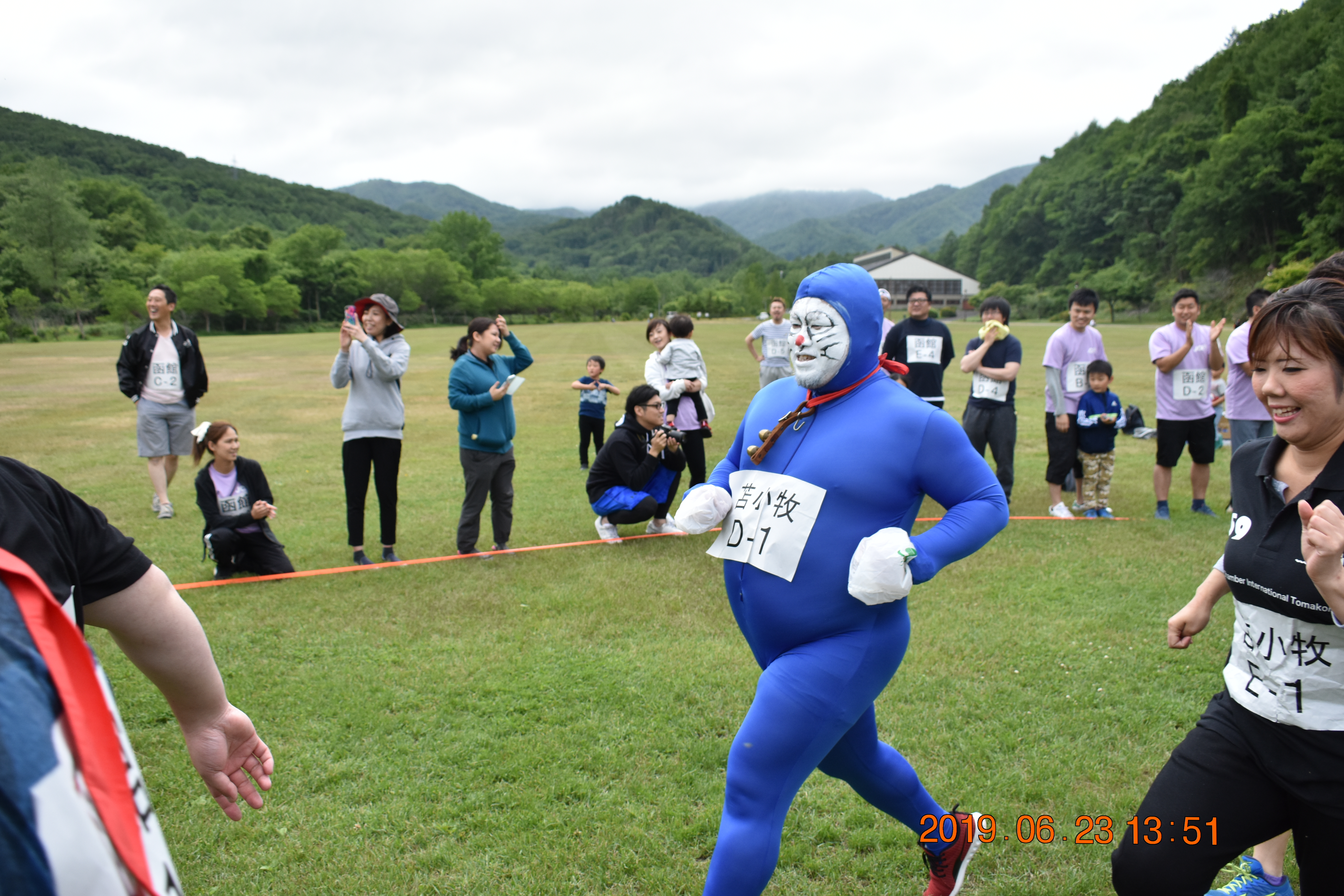 仮装ランナーのドラえもん南山も疲労困憊のところで