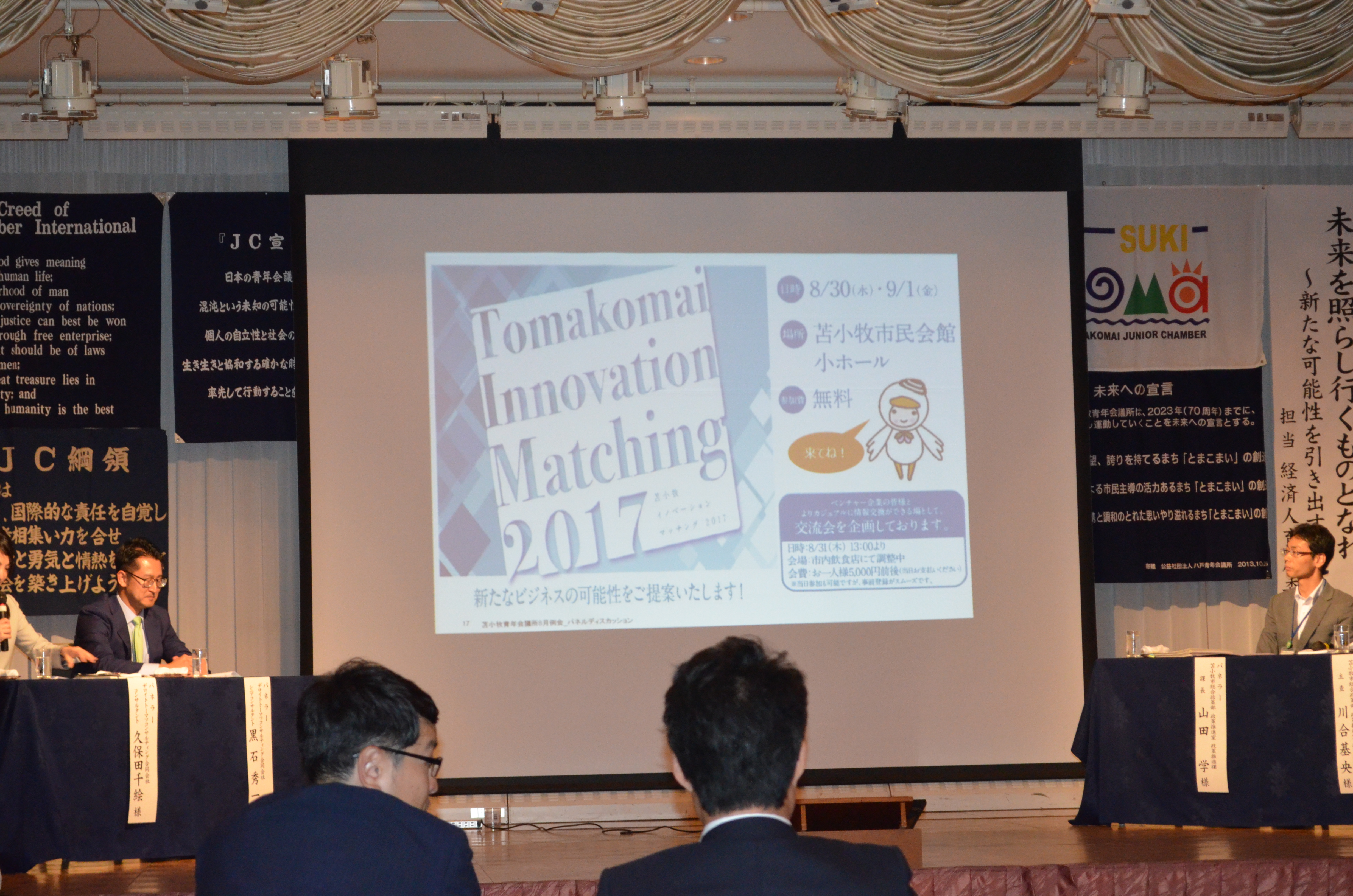 事業に先立ち、8月29日(火)グランドホテルニュー王子2Fにて経済人育成委員会担当8月第一例会を開催、翌月9月23日~24日(土祝・日)苫小牧市民活動センター並びにグランドホテルニュー王子にて「次世代イノベーター育成事業」を開催いたしました。